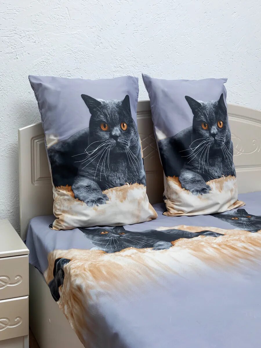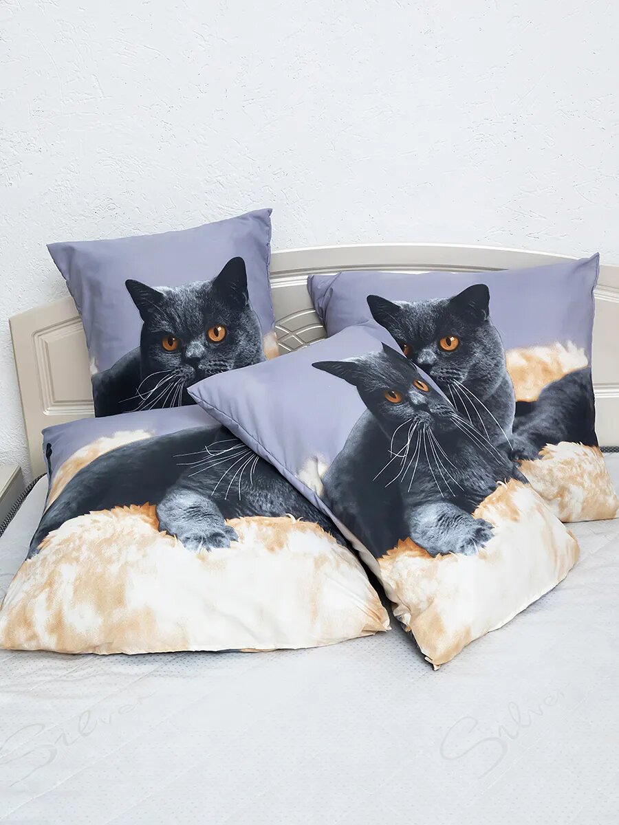 Наволочки от "avika", 70 x 70 см, полисатин, с рисунком, 2 шт./уп, "Котики" интересное: