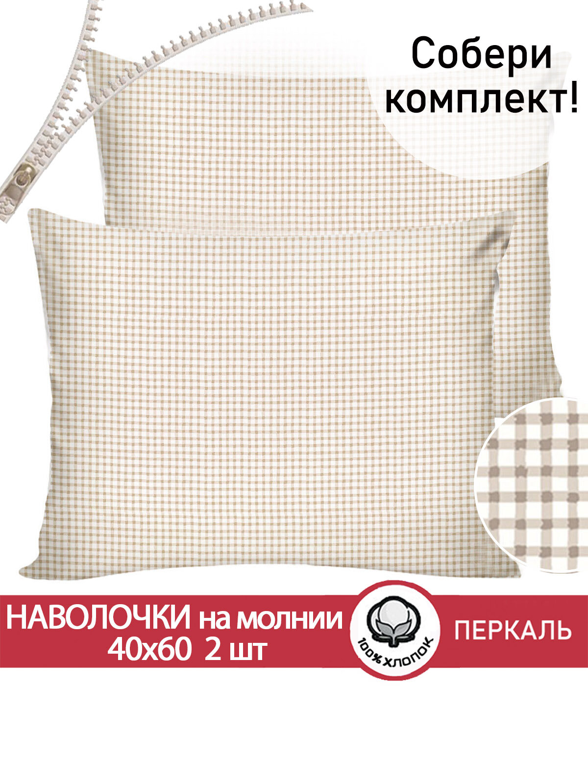 Купить Наволочка 2шт на молнии 40х60 см Сказка "Бежевая клеточка", ткань перкаль, 100% хлопок