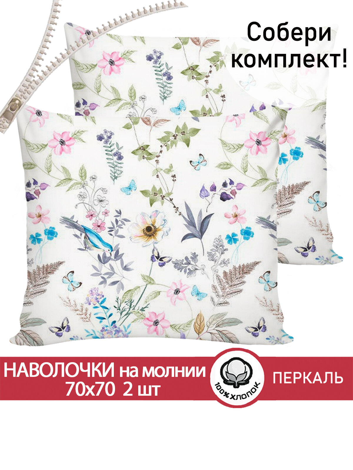 Наволочка 2шт на молнии 70х70 см Сказка "Ботаника", ткань перкаль, 100% хлопок