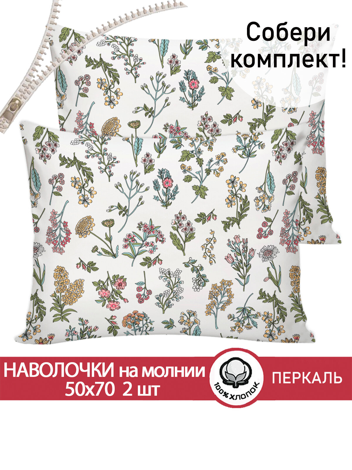 Купить Наволочка 2шт на молнии 50х70 см Сказка "Ботаника", ткань перкаль, 100% хлопок