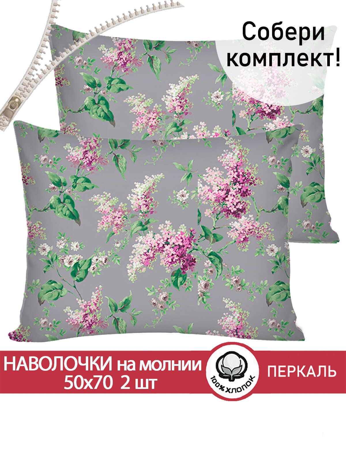 Купить Наволочка 2шт на молнии 50х70 см Сказка "Сирень", ткань перкаль, 100% хлопок