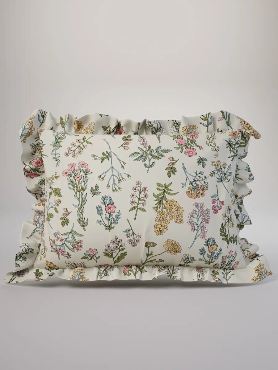 Декоративная наволочка с рюшами, оборками "Гербарий Эко" 40х60 см, 1 шт, без молнии