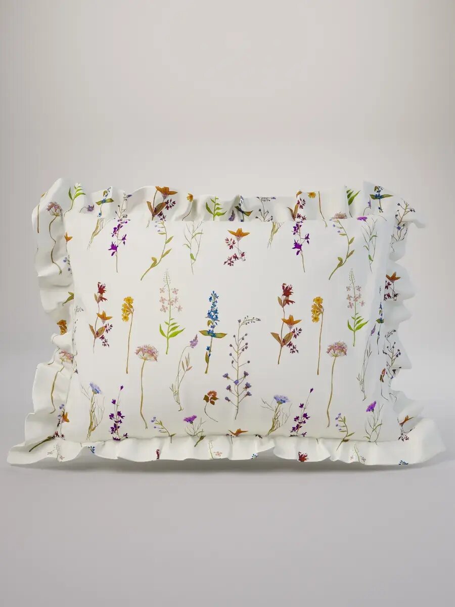 Декоративная наволочка с рюшами, оборками "Гербарий Эко" 40х60 см, 1 шт, без молнии