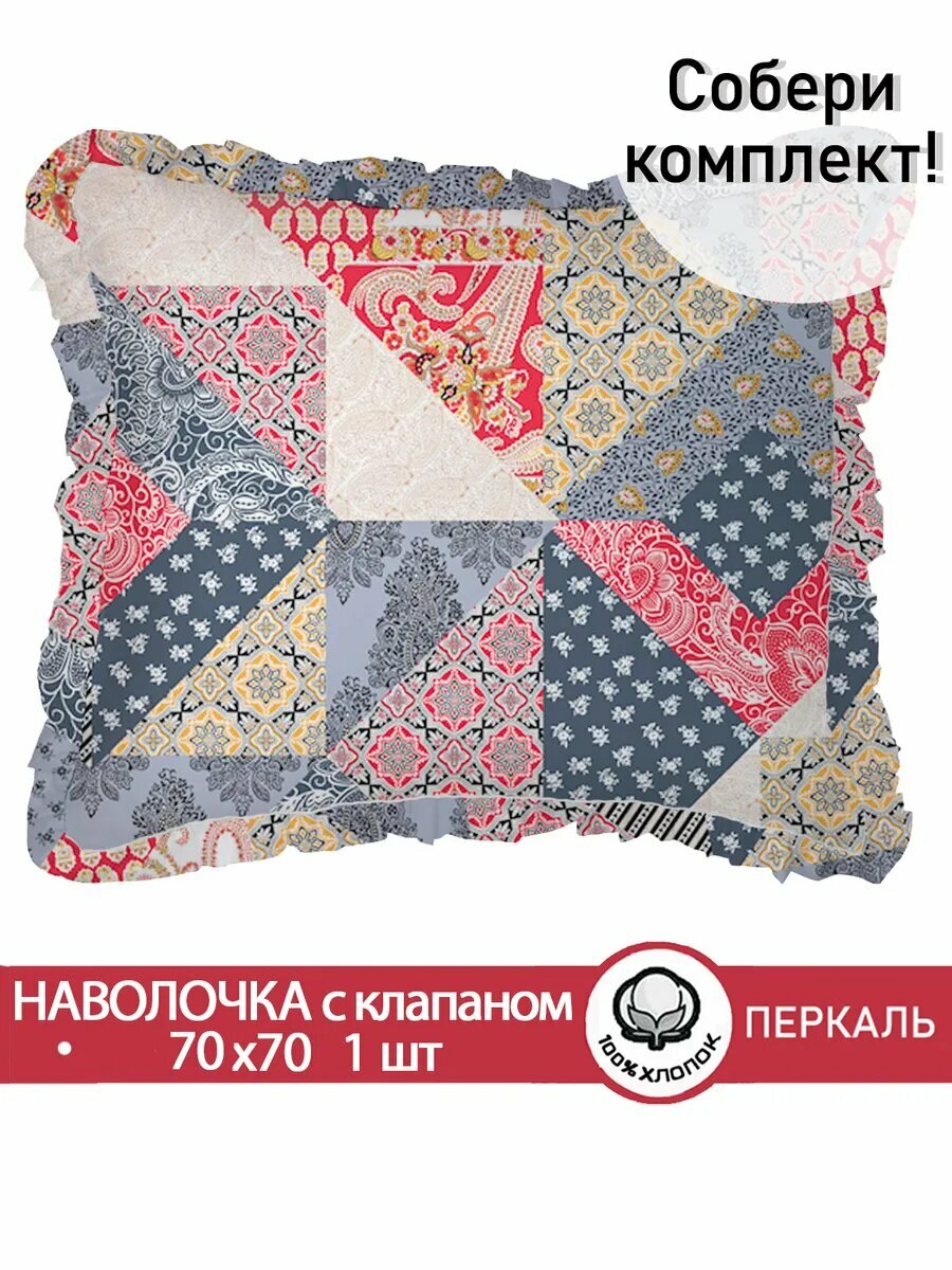 Купить Декоративная наволочка с рюшами, оборками "Пэчворк" 70х70 см, 1 шт, без молнии