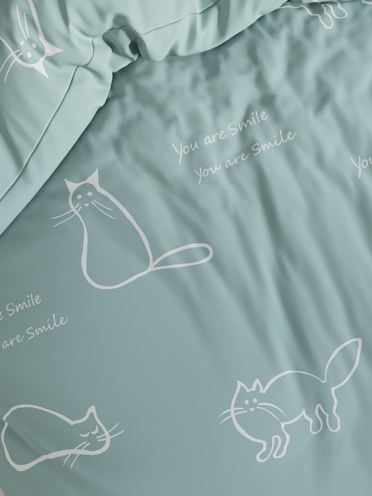 Наволочка 2шт на молнии Cказка "Котики (мята)" 40х40 см, ткань перкаль, 100% хлопок