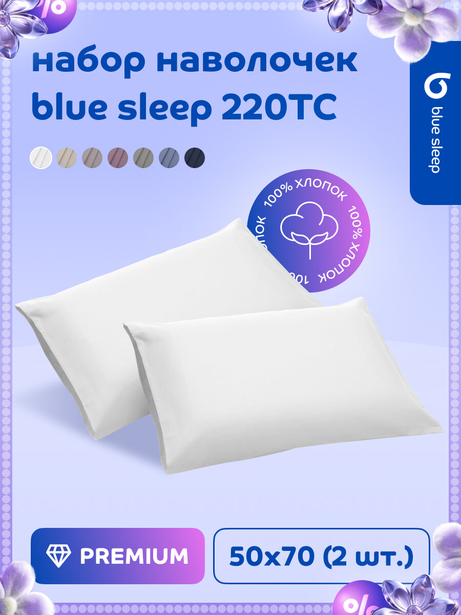 Набор наволочек Blue Sleep 50х70 2 шт, белый, хлопок, сатин, комплект интересное: