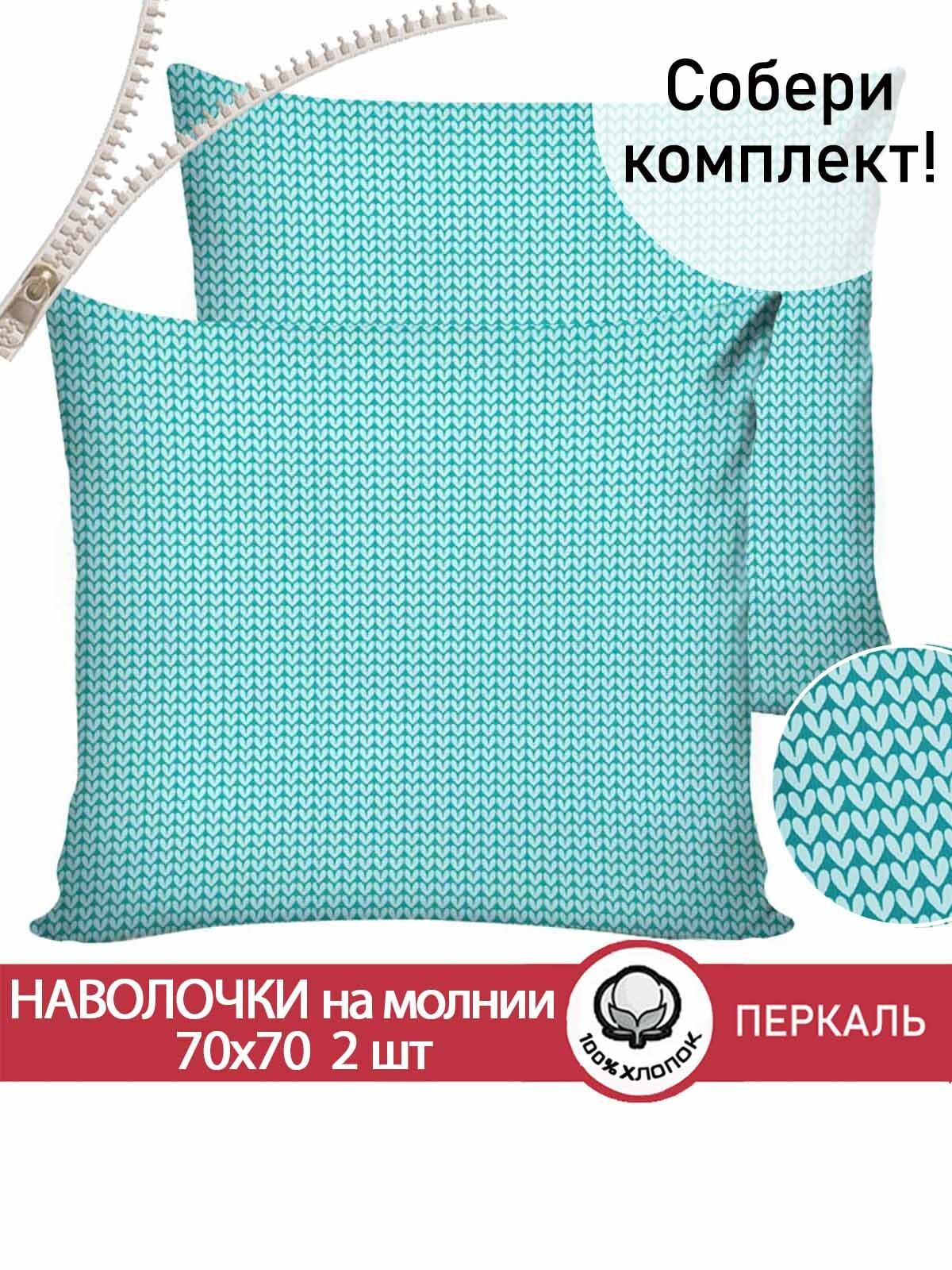 Купить Наволочка 2шт на молнии 70х70 см Сказка "Вязание лазурное", ткань перкаль, 100% хлопок
