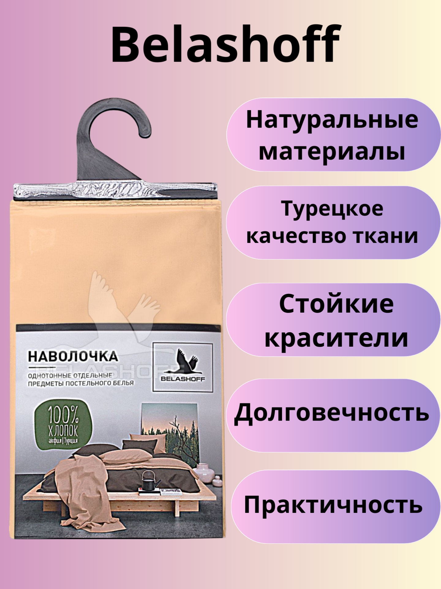 Наволочка 70х70 / Belashoff "АКФИЛ" / цвет миндальный / хлопок 100%