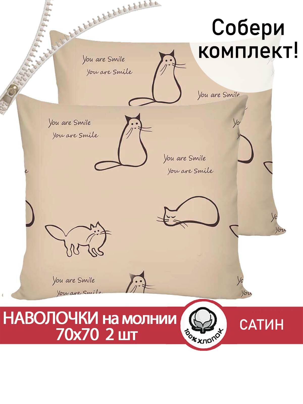 Наволочка 2шт на молнии 70х70 см Сказка Сатин "котики (беж)", ткань сатин, 100% хлопок интересное: