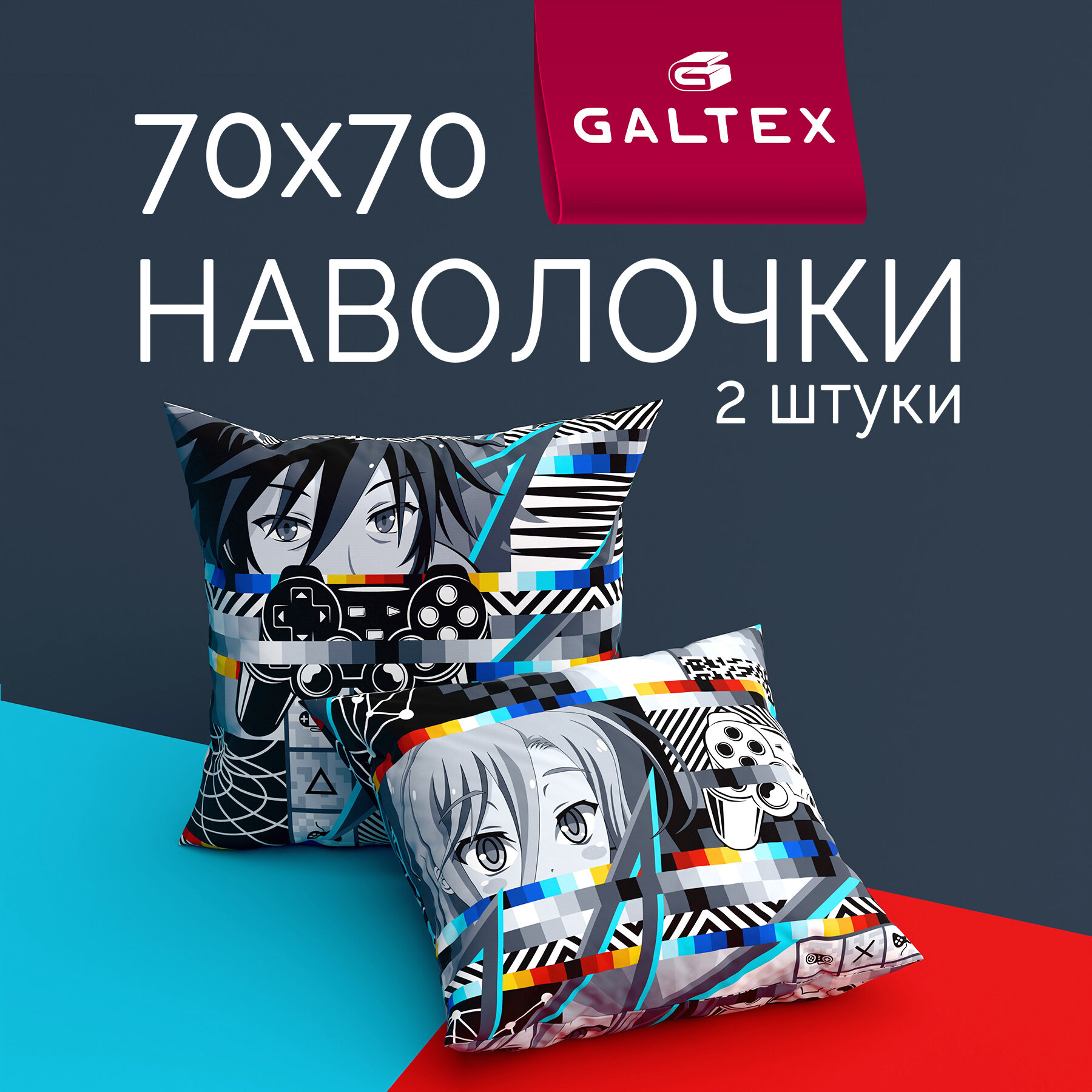 Наволочки 70х70 2 шт Galtex Аниме темно-серый бязь, 100% хлопок интересное: