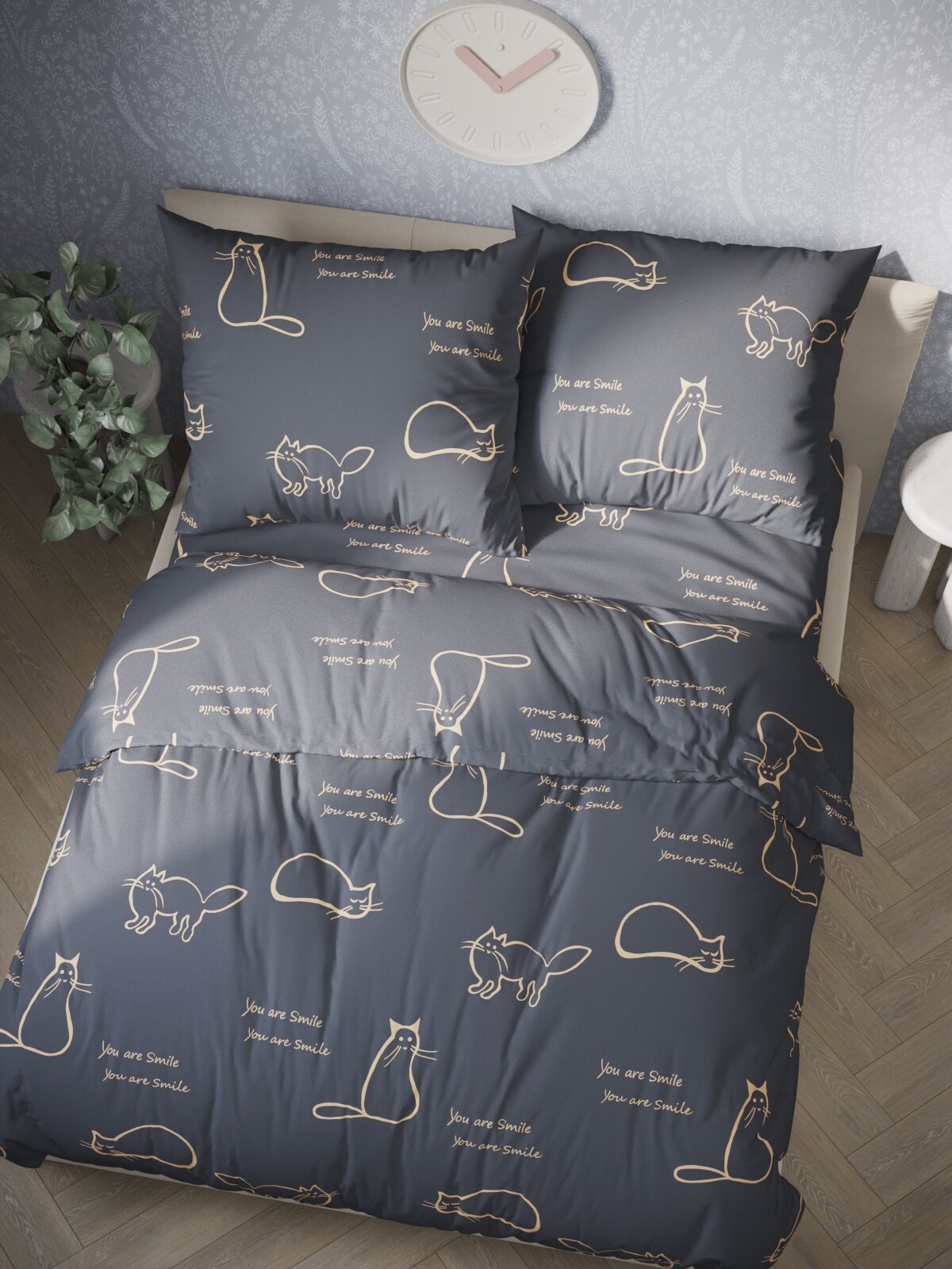 Купить Наволочка 2шт на молнии 70х70 см Мечта "Котики на сером", ткань полисатин
