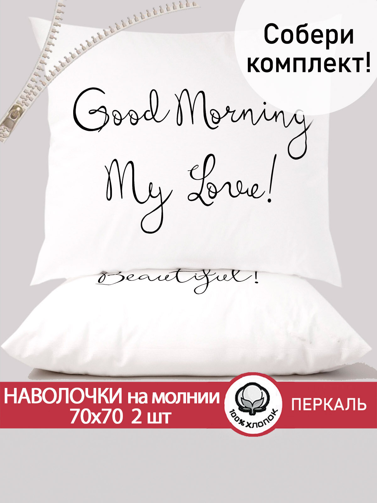 Наволочка 2шт на молнии 70х70 см Сказка "Good Morning", ткань перкаль, 100% хлопок интересное: