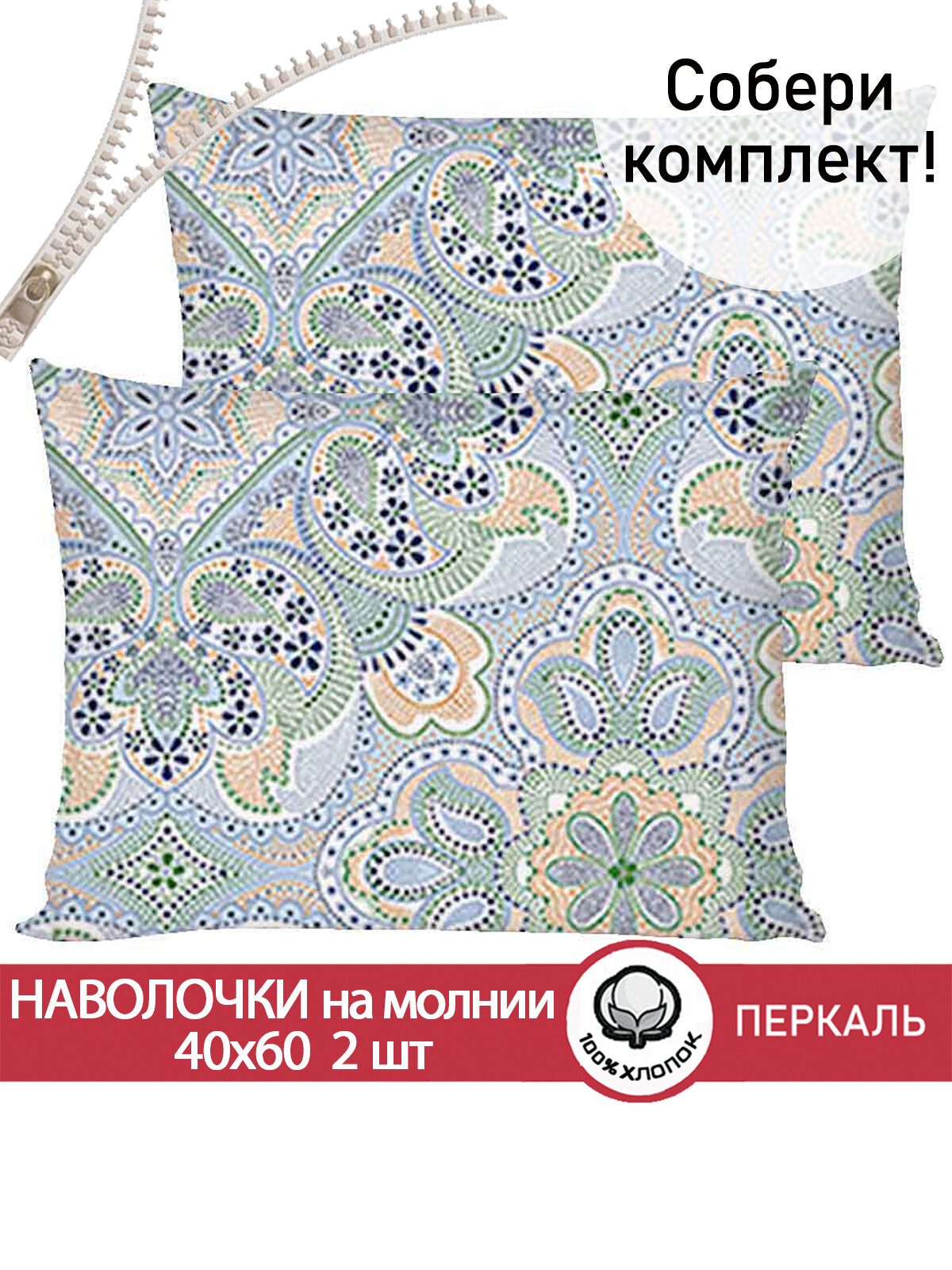 Купить Наволочка 2шт на молнии 40х60 см Сказка "Бисер", ткань перкаль, 100% хлопок