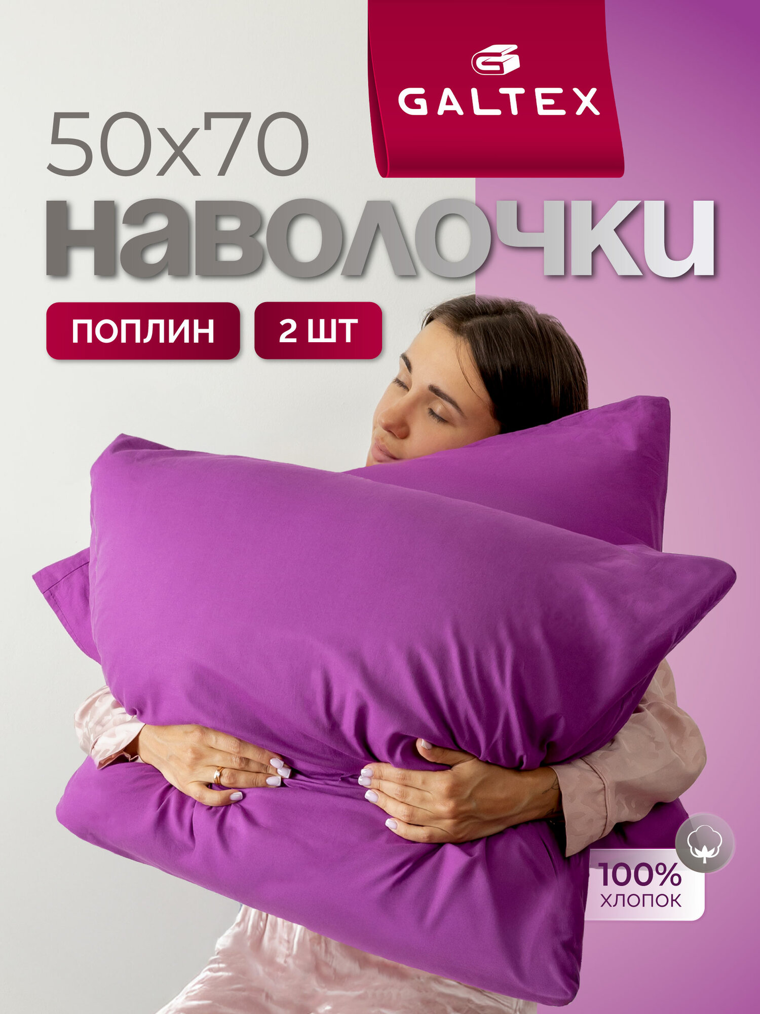 Наволочки 50x70 2 шт Galtex Нежность поплин Сиреневый 100% хлопок интересное: