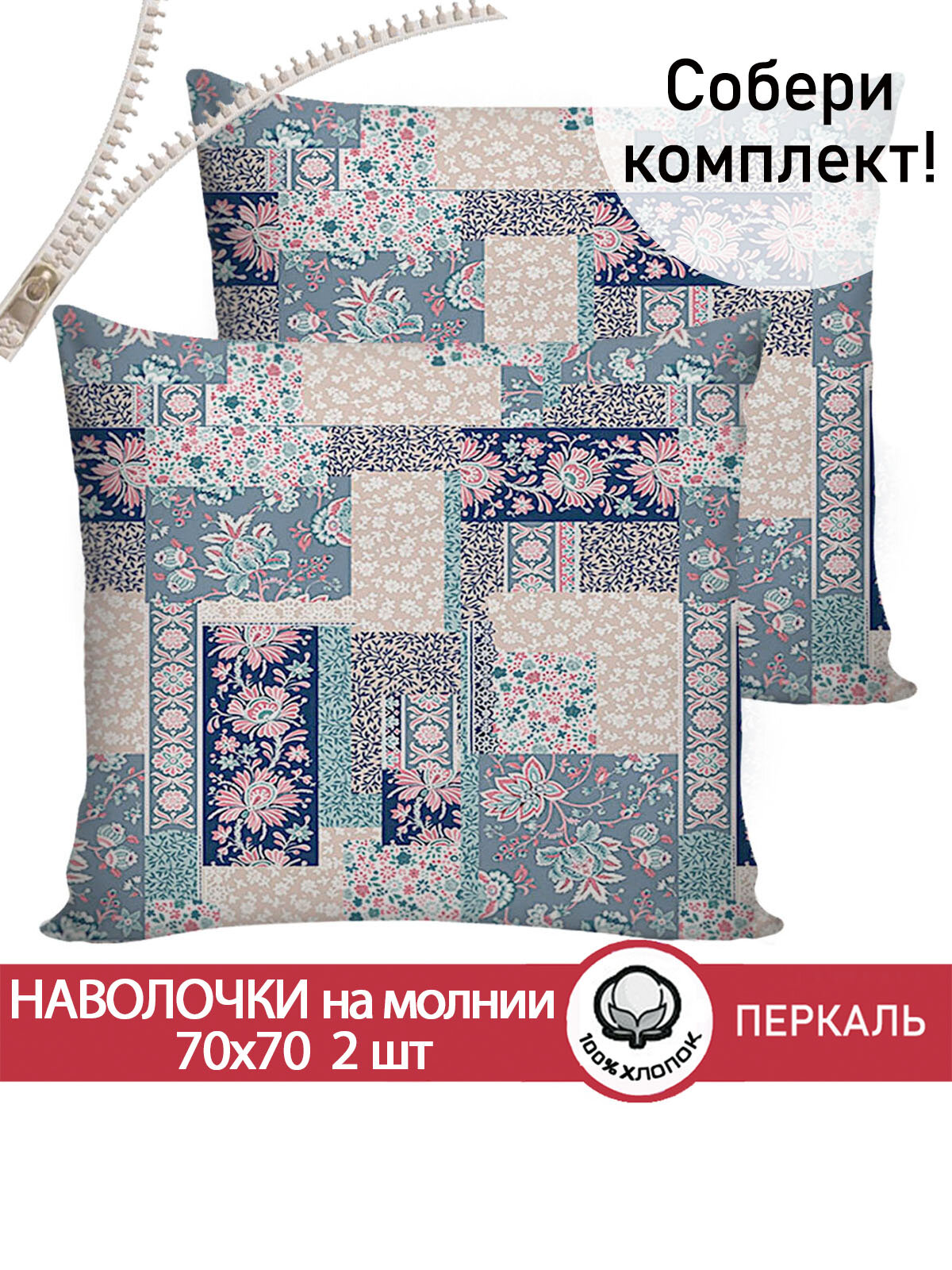 Наволочка 2шт на молнии 70х70 см Сказка "Лоскутная мозаика", ткань перкаль, 100% хлопок интересное: