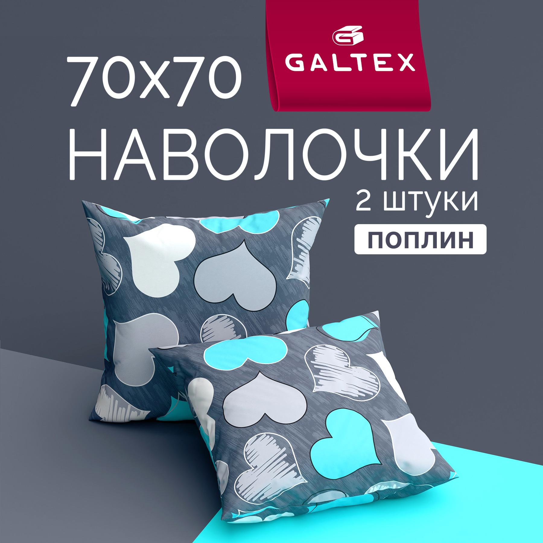 Наволочки 70х70 2 шт Galtex Романтика бирюзовый поплин 100% хлопок интересное: