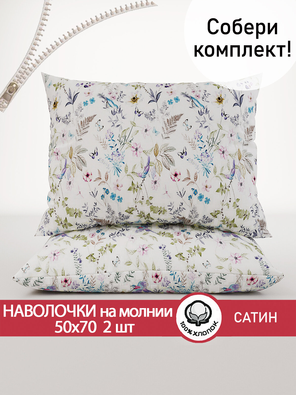 Наволочка 2шт на молнии 50х70 см Сказка Сатин "Каролина", ткань сатин, 100% хлопок интересное: