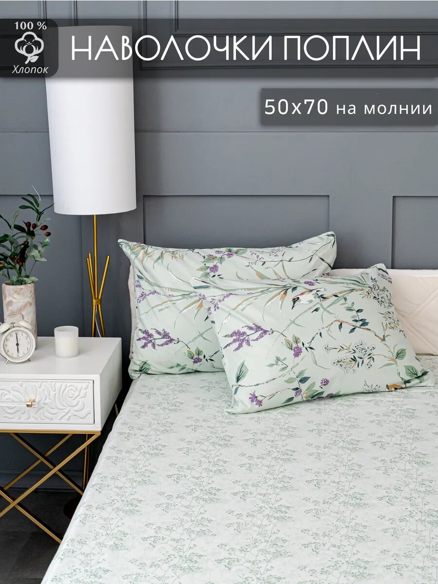 Наволочки ТК Терра, хлопок, поплин, 50x70см, 2 шт, зеленый, 100%, на молнии интересное: