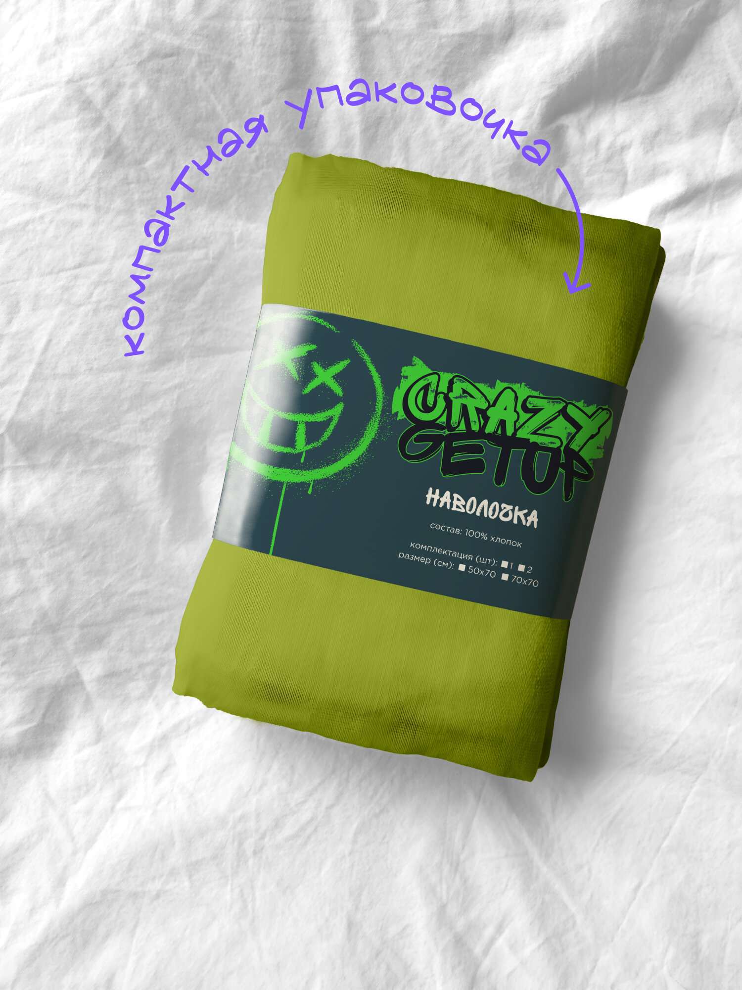 Наволочки 70x70 2шт хлопок "Crazy Getup" рис. 43300-34 Crazy Sage