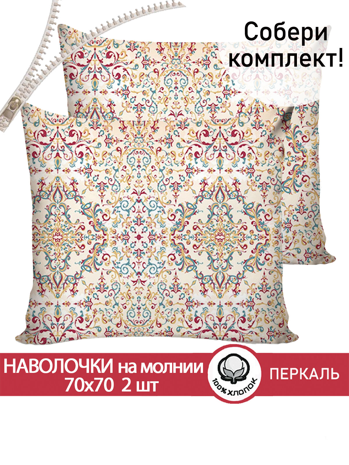 Наволочка 2шт на молнии 70х70 см Сказка "Узорная графика", ткань перкаль, 100% хлопок интересное:
