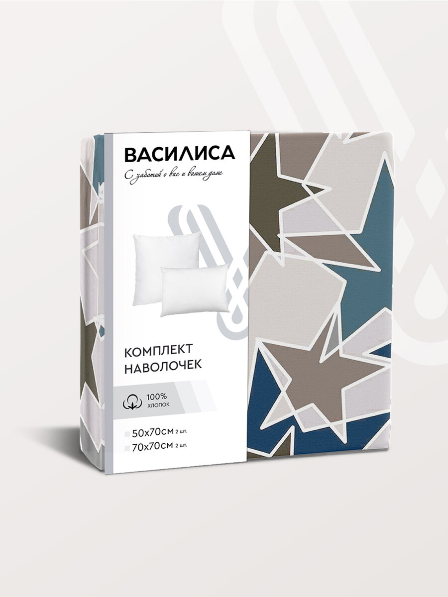 Комплект наволочек Василиса 70х70 см, 2 шт, Бязь, хлопок 100%, Фьюжн