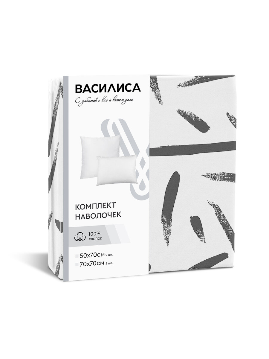 Комплект наволочек Василиса 70х70 см, 2 шт, Бязь, хлопок 100%, Между строк