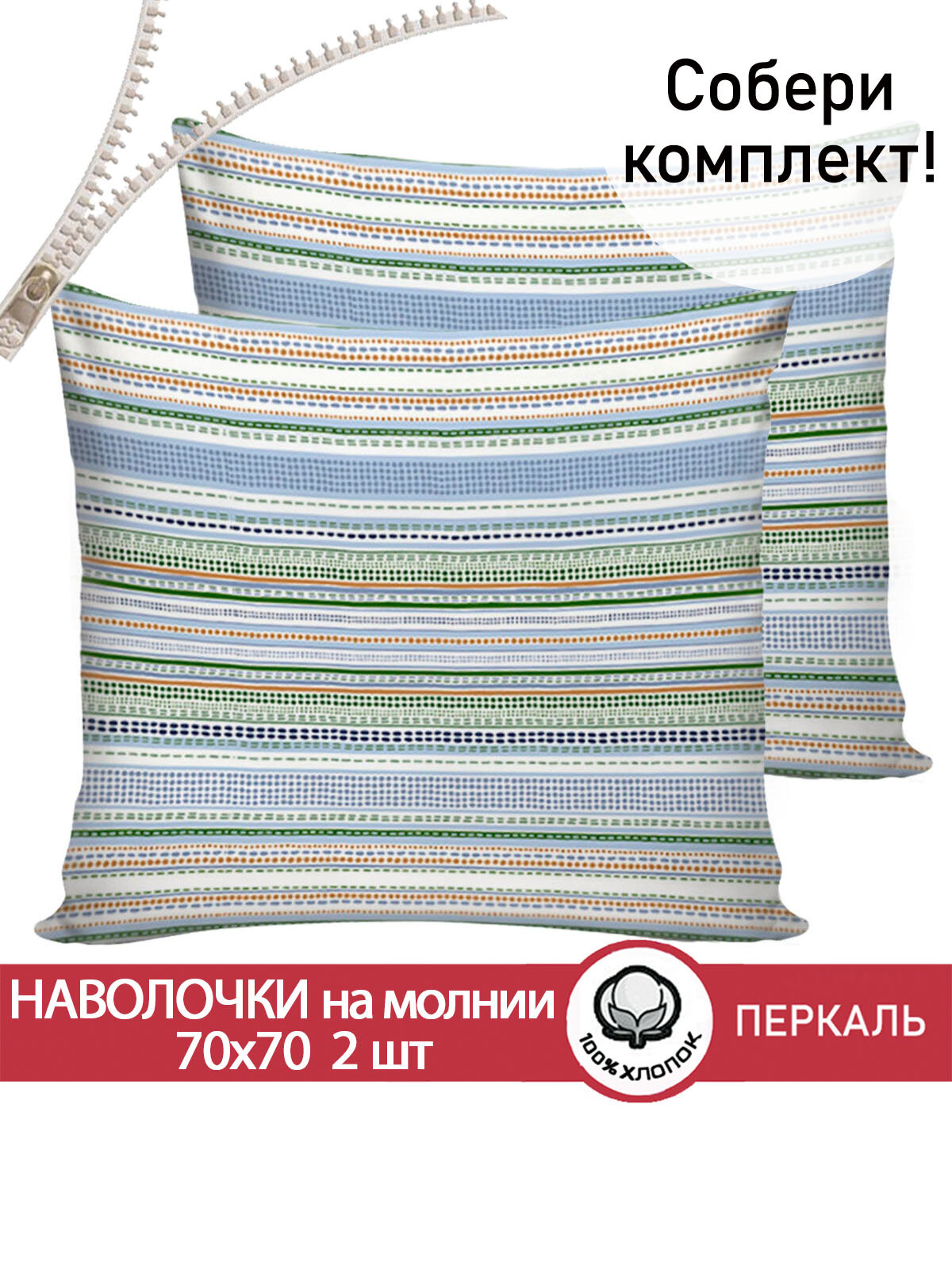Купить Наволочка 2шт на молнии 70х70 см Сказка "Бисер", ткань перкаль, 100% хлопок