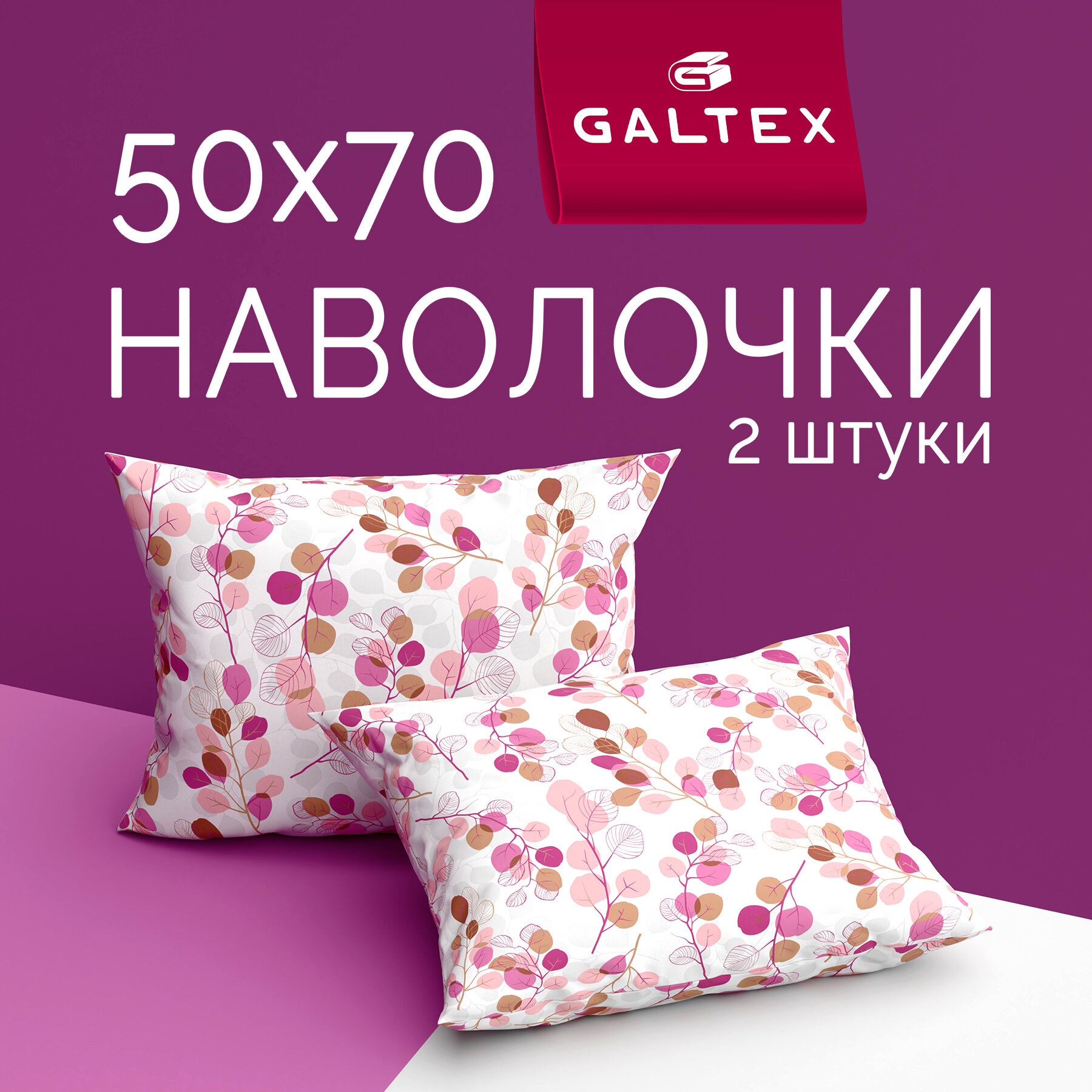 Наволочки 50x70 2 шт Galtex Эвкалипт розовый на белом фоне бязь, 100% хлопок интересное: