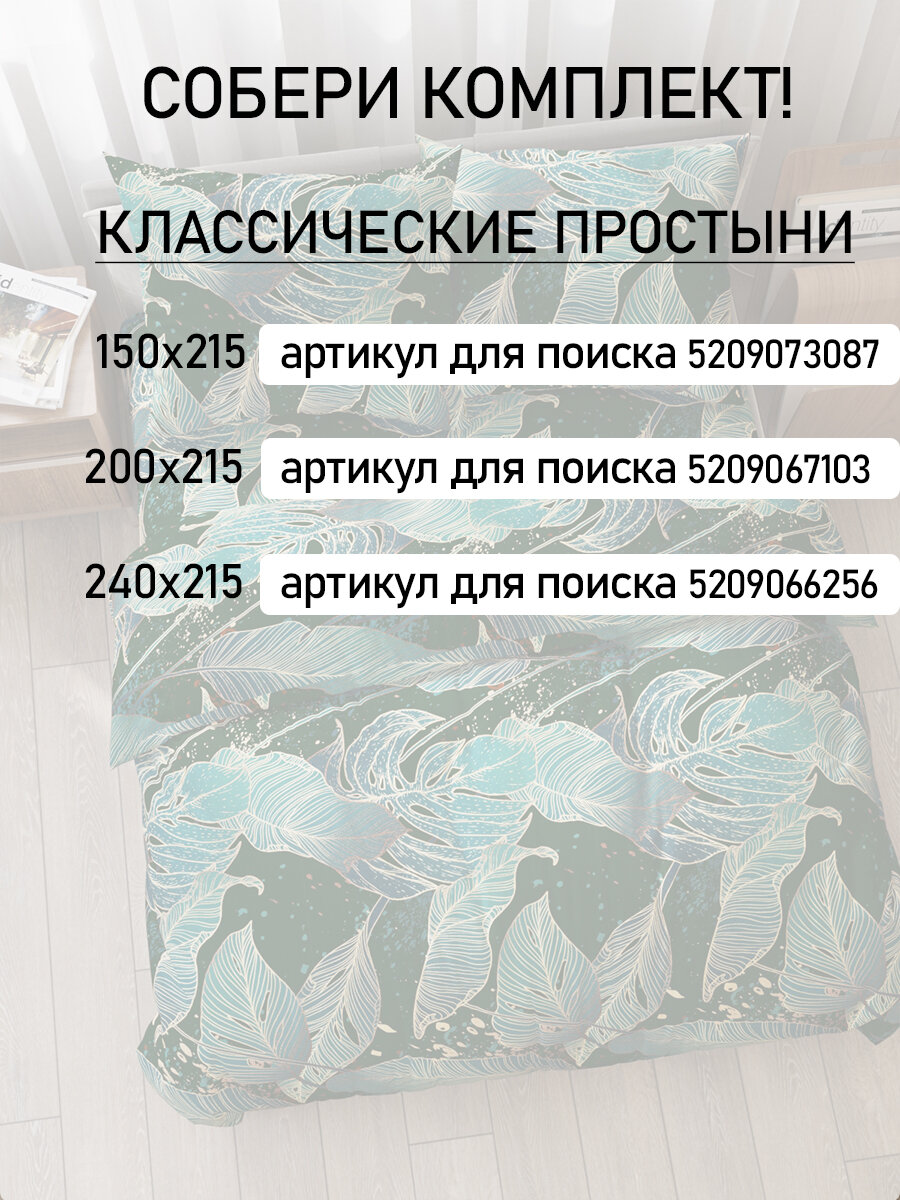 Пододеяльник 175х215 см на молнии, 2-спальный, Мечта "Monstera Gold", ткань полисатин интересное: