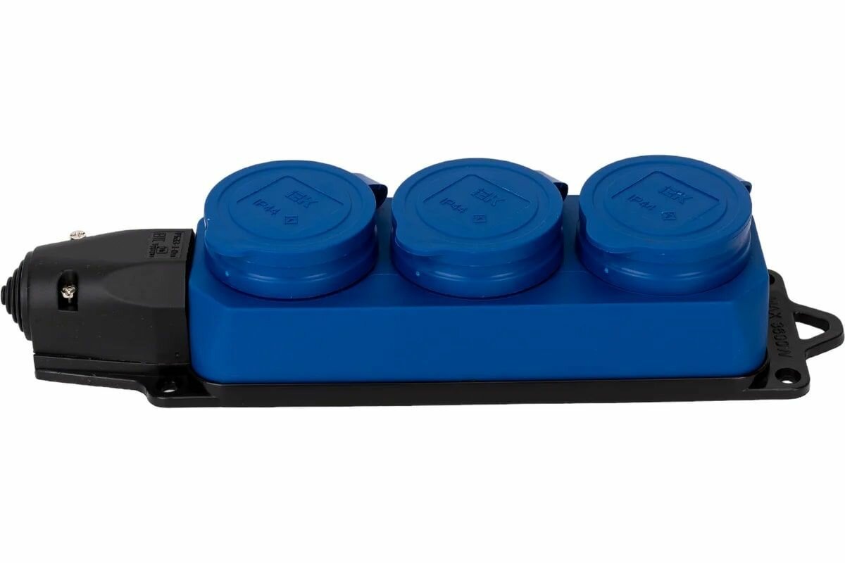 Колодка розеточная IEK Омега, 3 гнезда, с крышками, с заземлением, 16 А, IP44, синяя