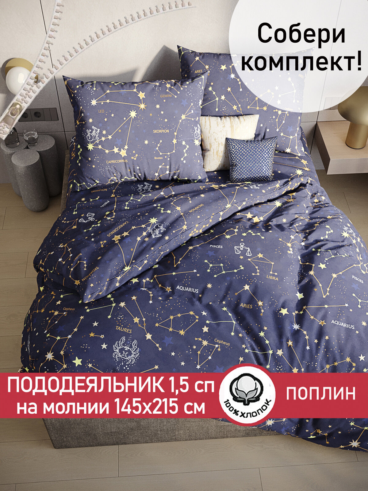 Пододеяльник 145х215 см на молнии, 1,5 спальный, Сказка "Созвездия", ткань поплин, 100% хлопок интересное: