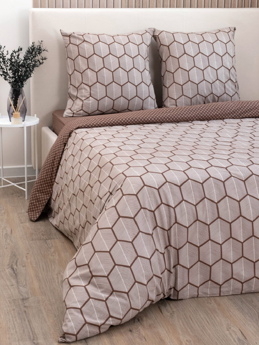 Пододеяльник Василиса Евро 200х215 см, Поплин, хлопок 100%, Пралине