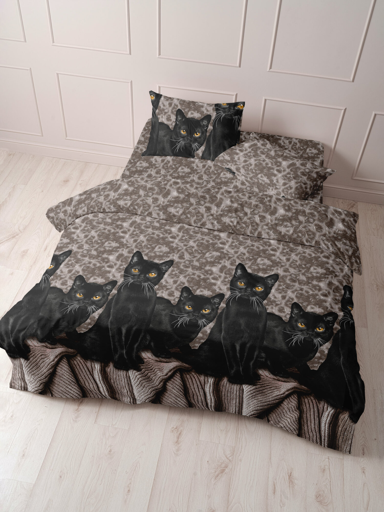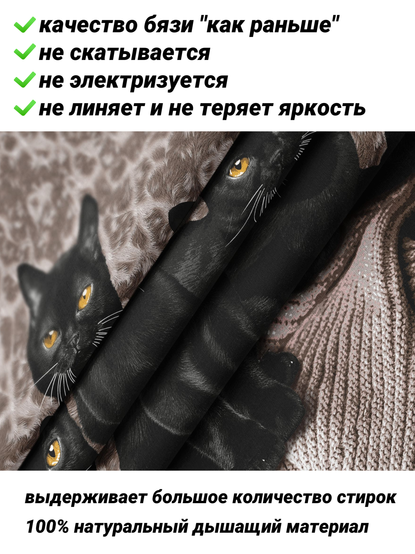 СохранитьПододеяльник евро (200х220) "Черные кошки" СПАЛЕНКА78 бязь Премиум класса 100% хлопок интересное: