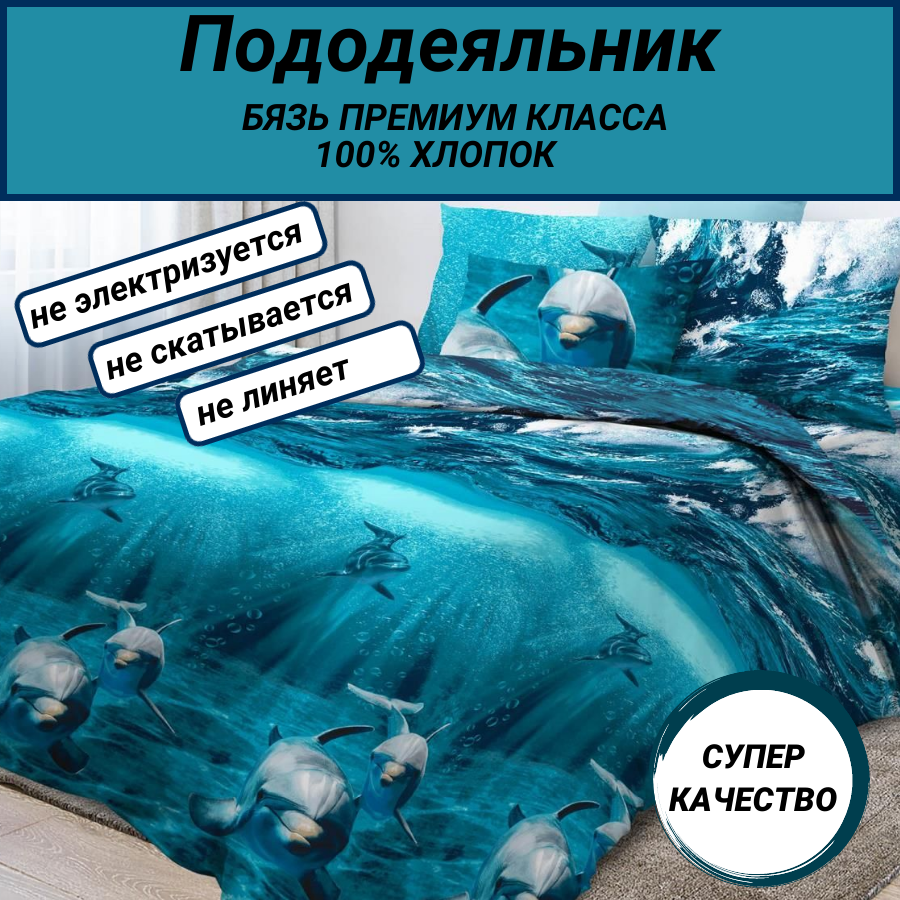СохранитьПододеяльник евро (200х220) "Дельфины" СПАЛЕНКА78 бязь Премиум класса 100% хлопок интересное: