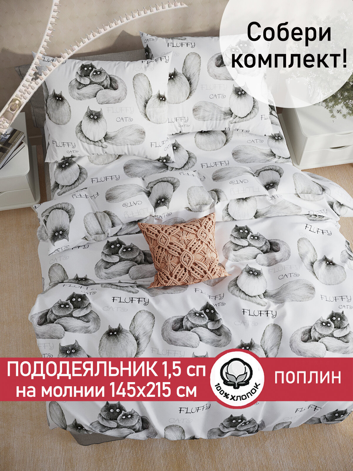 Пододеяльник Кот Коттон "Локи" 1,5-сп 145х215 см