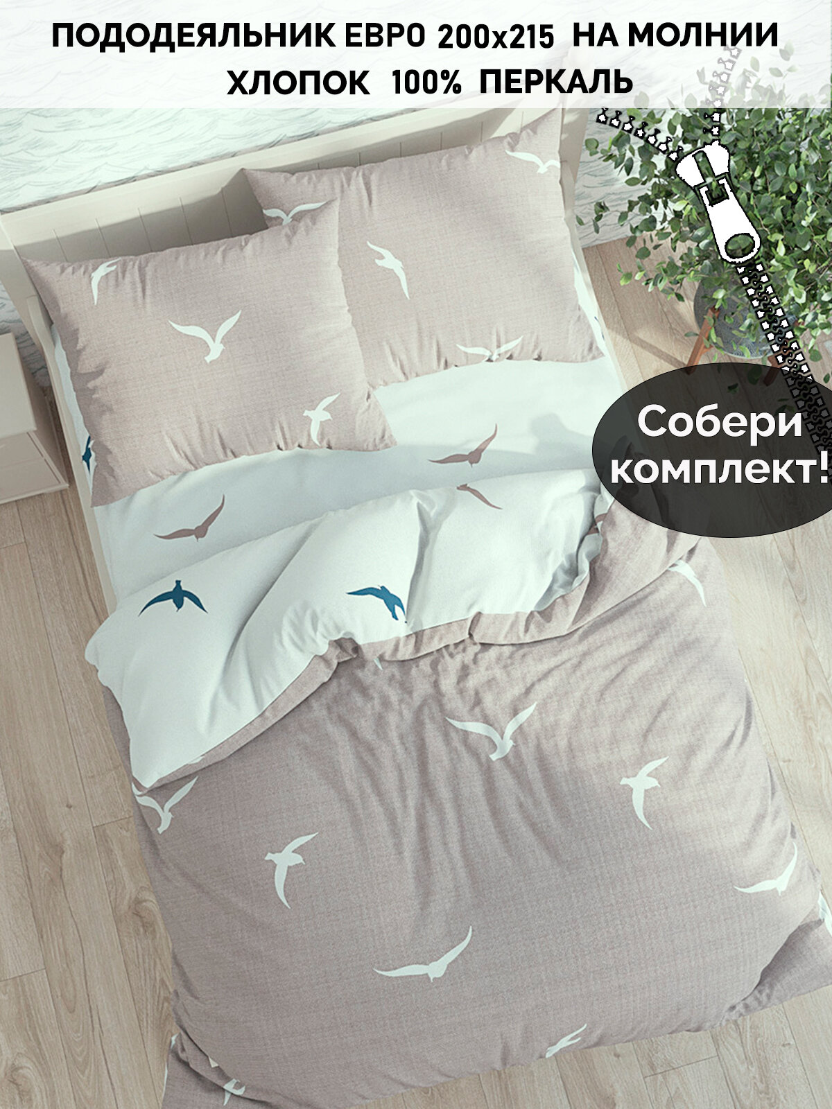 Пододеяльник Кот Коттон "Чайки" евро 200х215 см интересное: