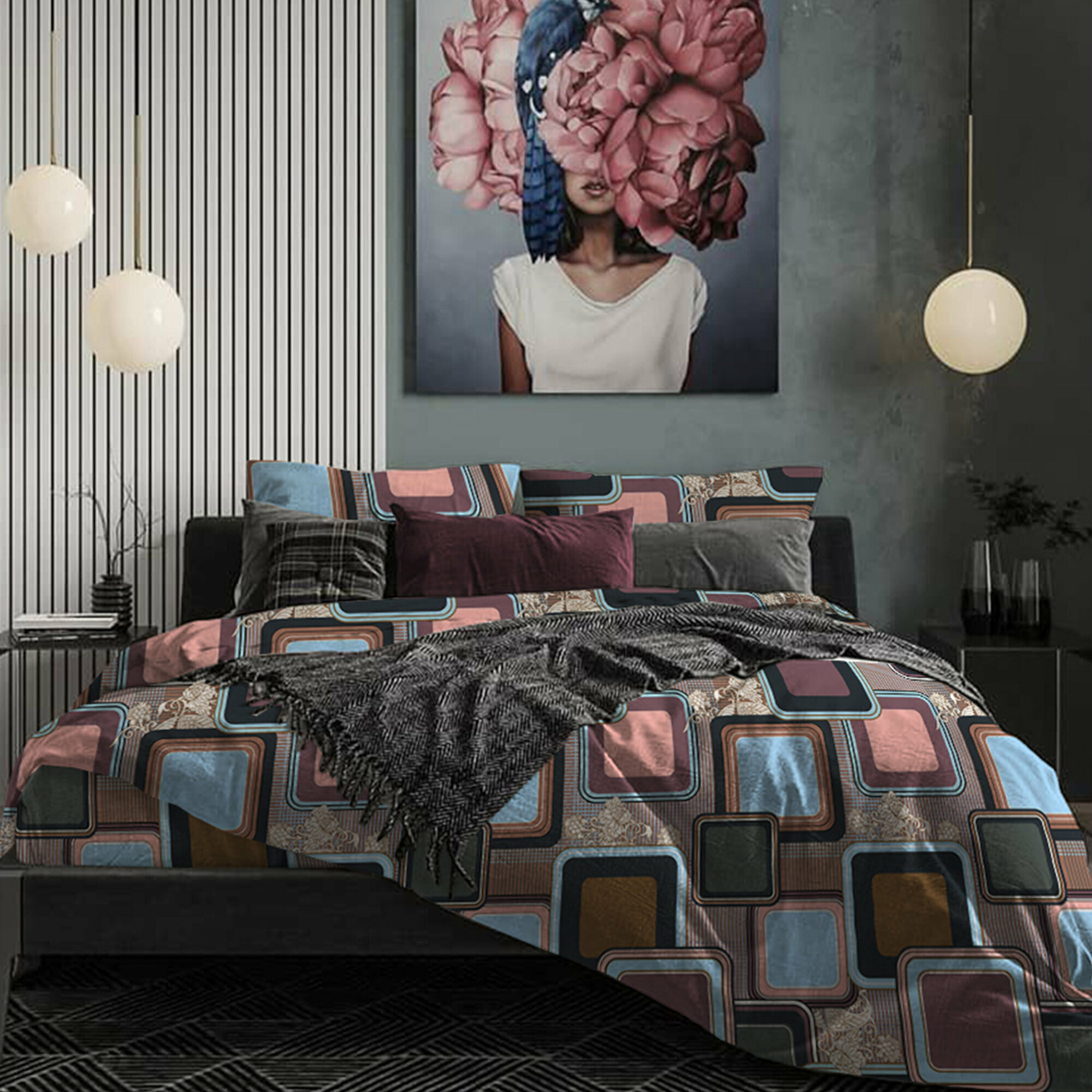 Пододеяльник 2х спальный 175х215 см Galtex Грани темно-серый бязь 100% хлопок