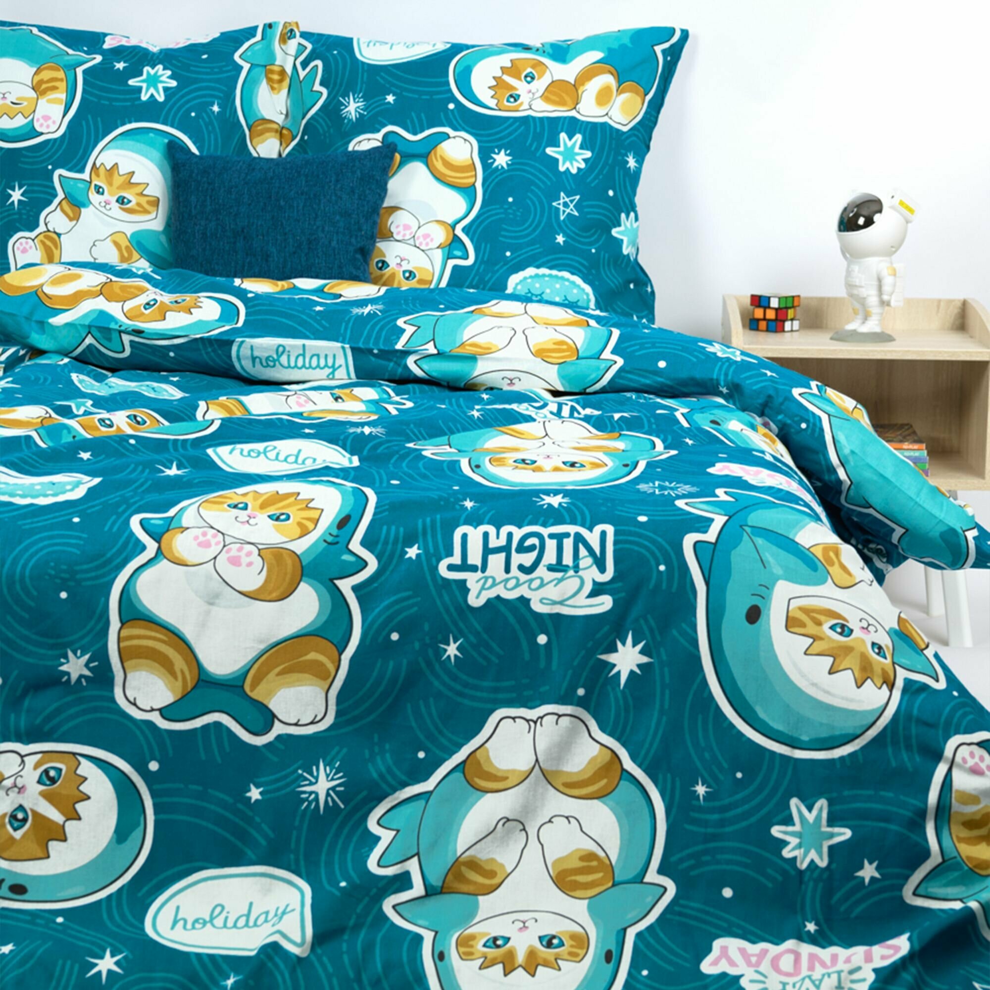 СохранитьПододеяльник 1 5 спальный 150х200 см Galtex Кот Акула темно-синий бязь 100% хлопок интересное: