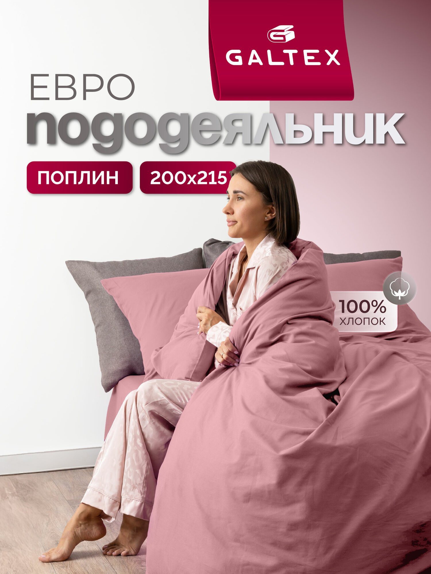 Пододеяльник евро 200х220 см Galtex Симфония пудровый поплин 100% хлопок