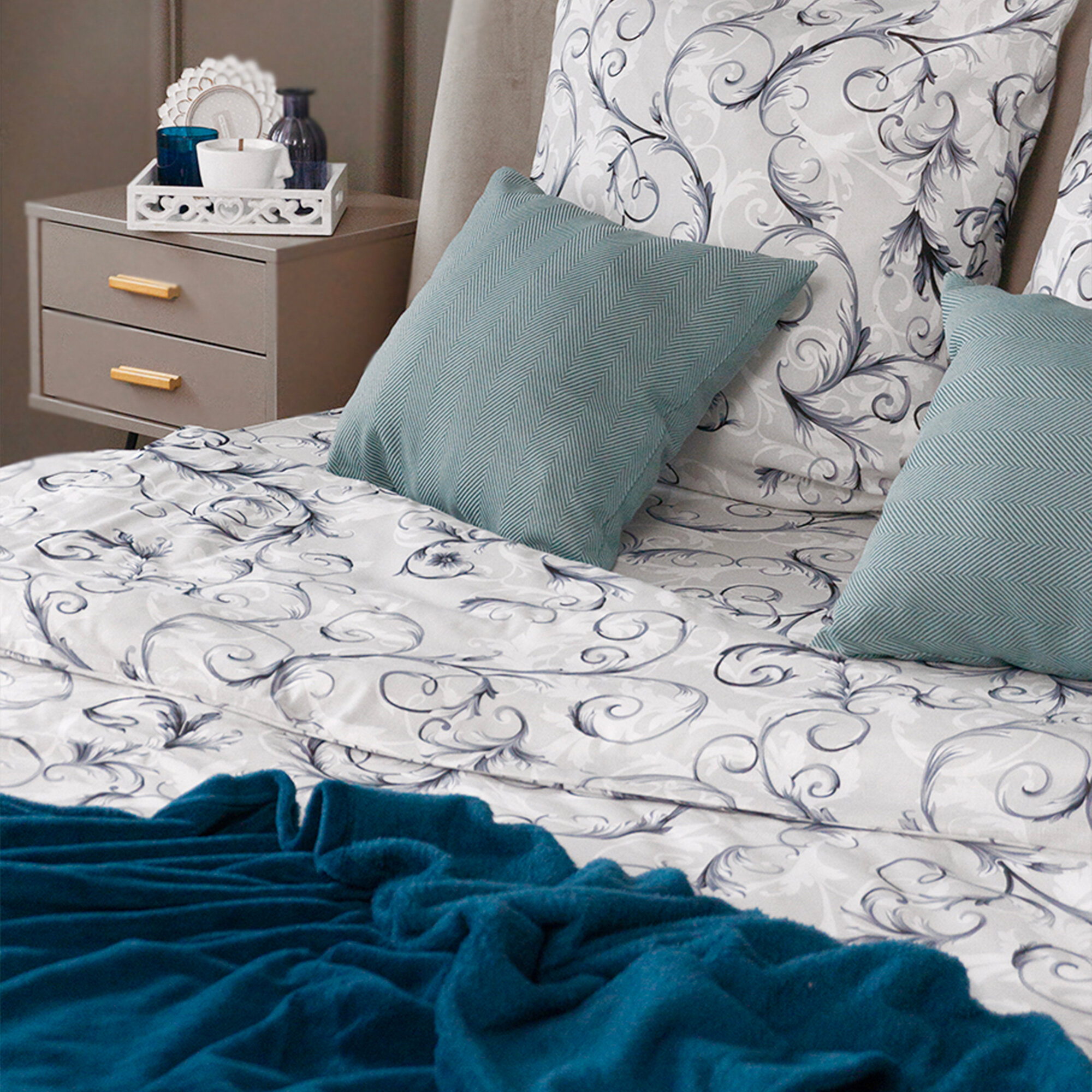 Пододеяльник евро 200х220 см Galtex Богема серый бязь 100% хлопок