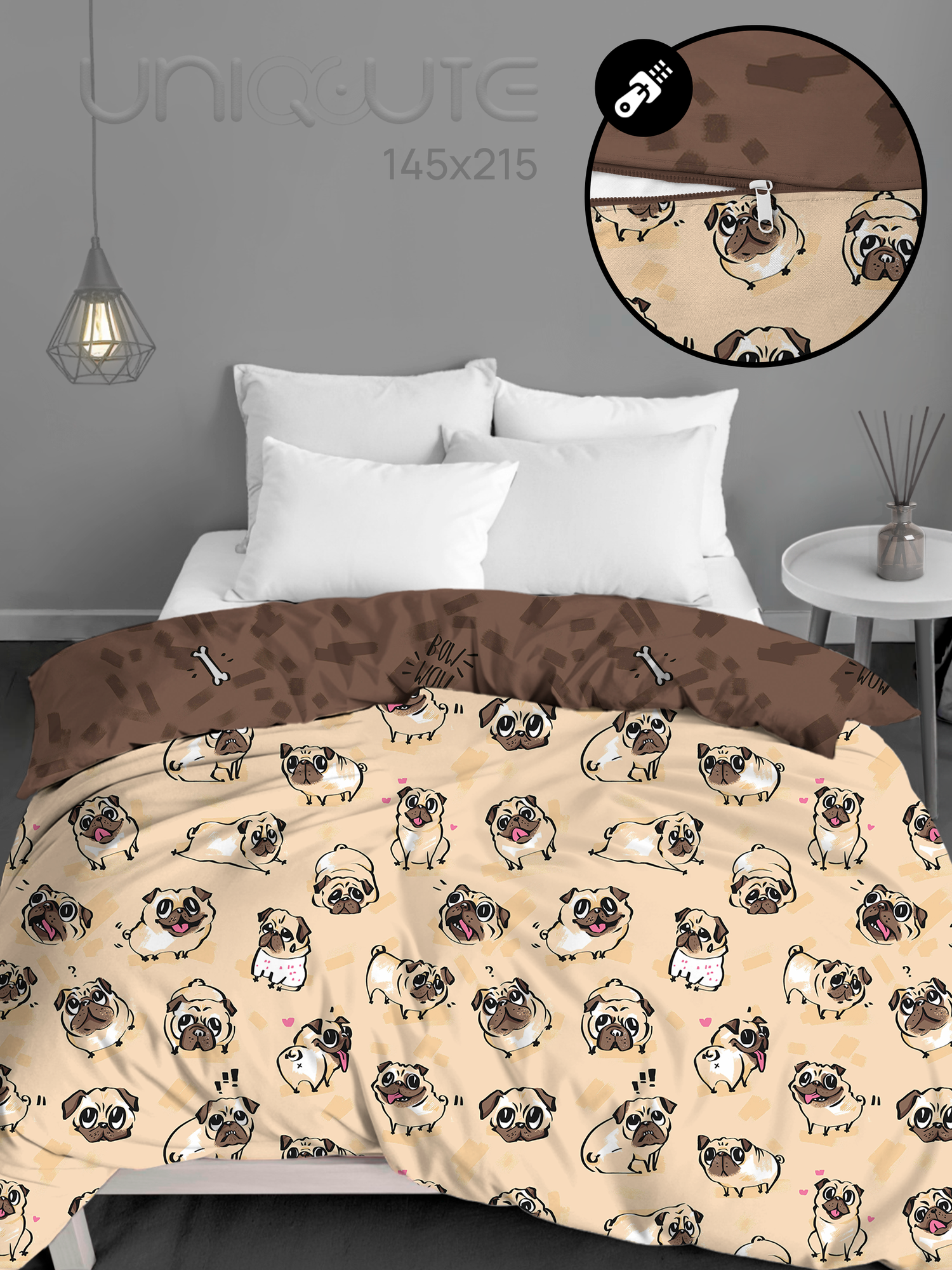 Пододеяльник на молнии Uniqcute 1,5-спальный 145х215 см, Поплин, Корри