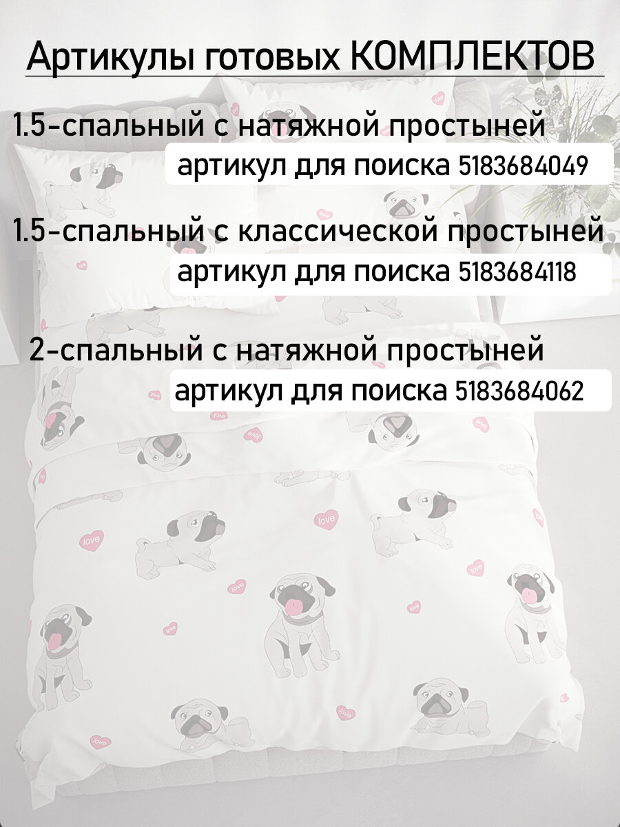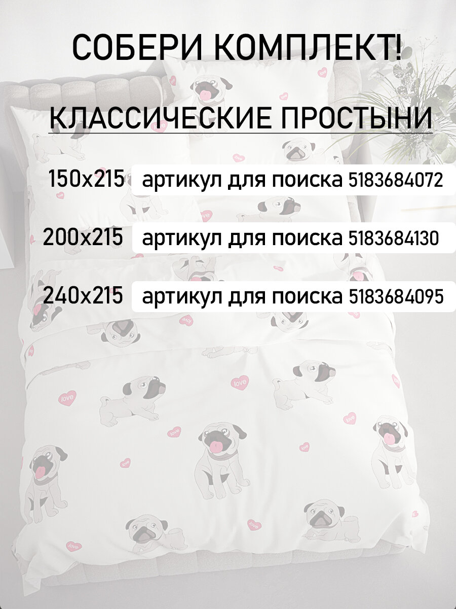 Пододеяльник 200х215 см на молнии, евро, Мечта "Мопсики", ткань полисатин интересное: