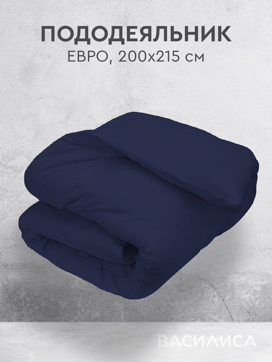 Пододеяльник Василиса Глянец Евро 200х215 см, Перкаль, Деним