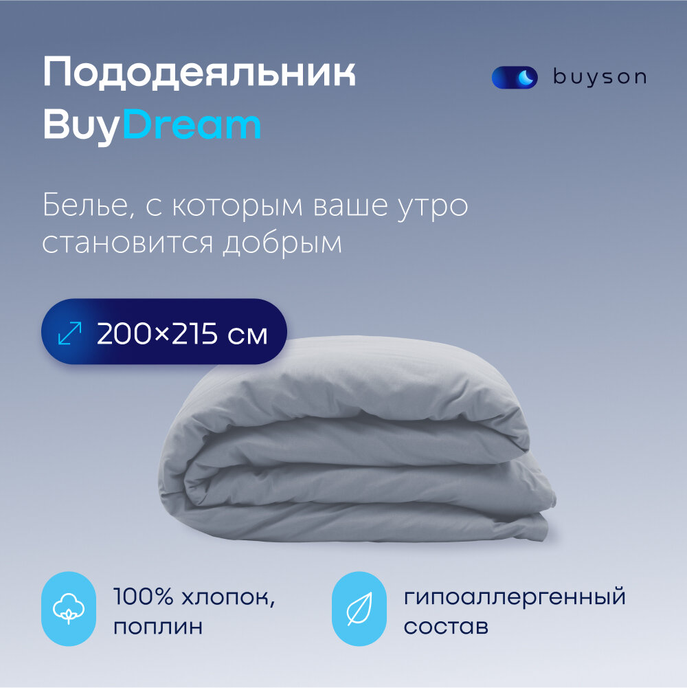 Пододеяльник BuyDream 2 спальный 175x215 см, хлопок (поплин), цвет серо-голубой