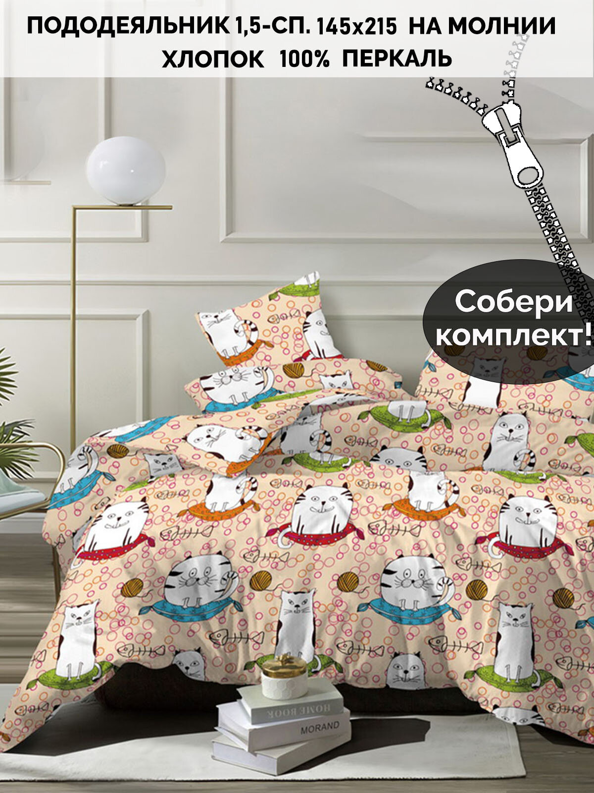 Пододеяльник "Кот Коттон Тулле", бязь, 100 % хлопок, 1,5 спальный, 145x215 см интересное:
