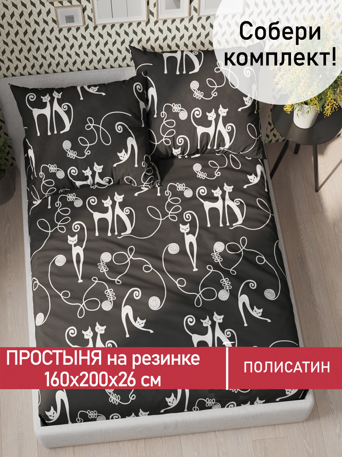 Простынь на резинке натяжная Ambesonne, 90х200 Микросатин аналог икеа