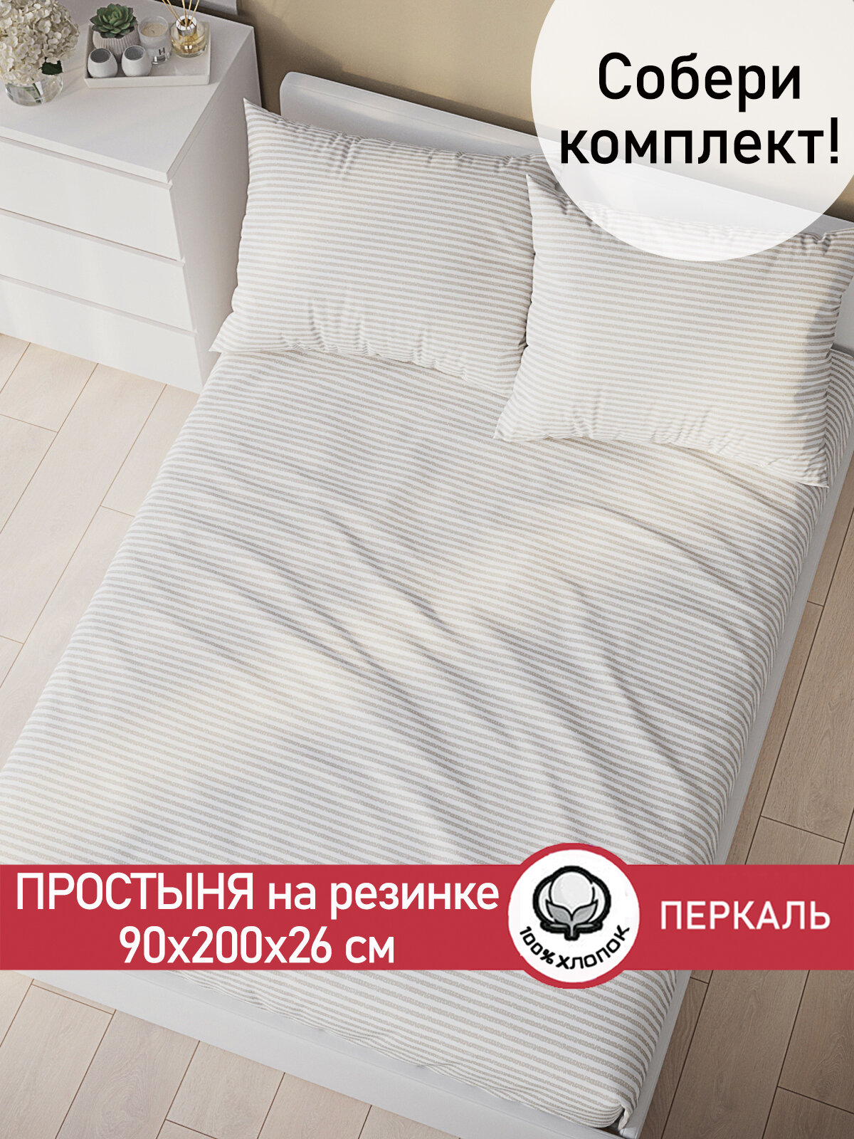 Простынь на резинке Сказка "Лутон" 90х200 см, ткань перкаль, 100% хлопок, высота 26 см интересное: