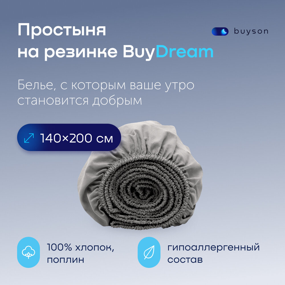СохранитьПростыня на резинке buyson BuyDream 140x200 хлопок (поплин), стальной интересное: