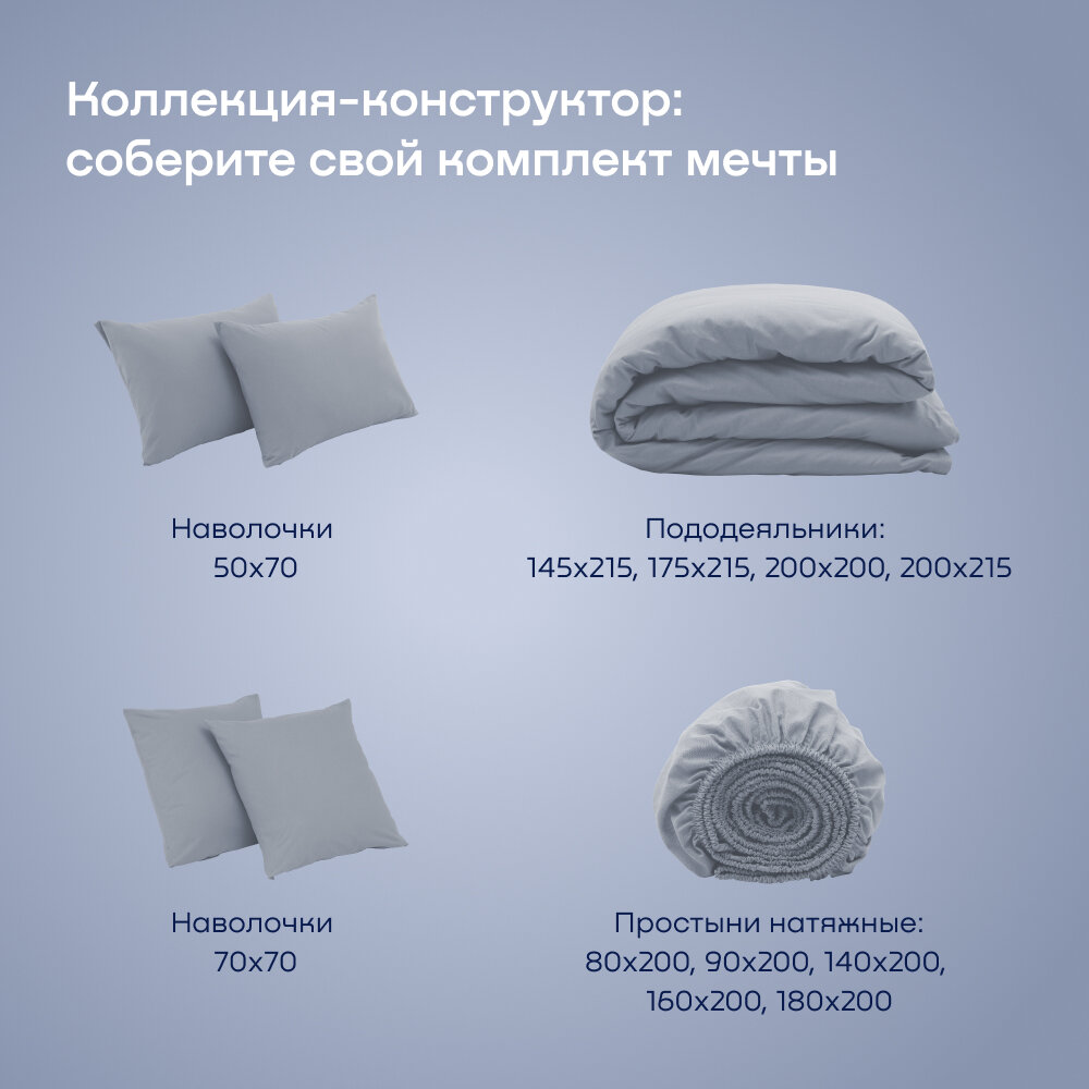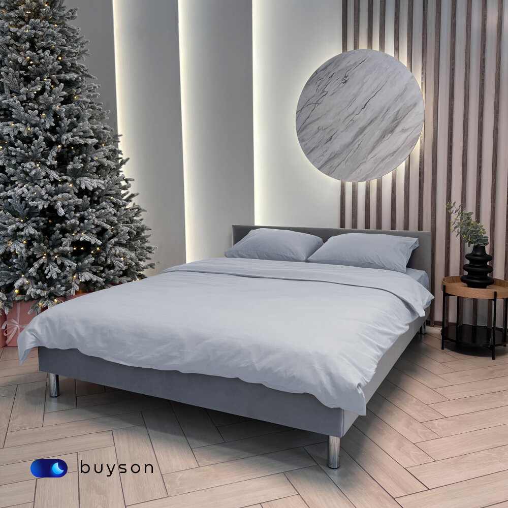 Простыня на резинке buyson BuyDream 140x200 хлопок (поплин), серо-голубой