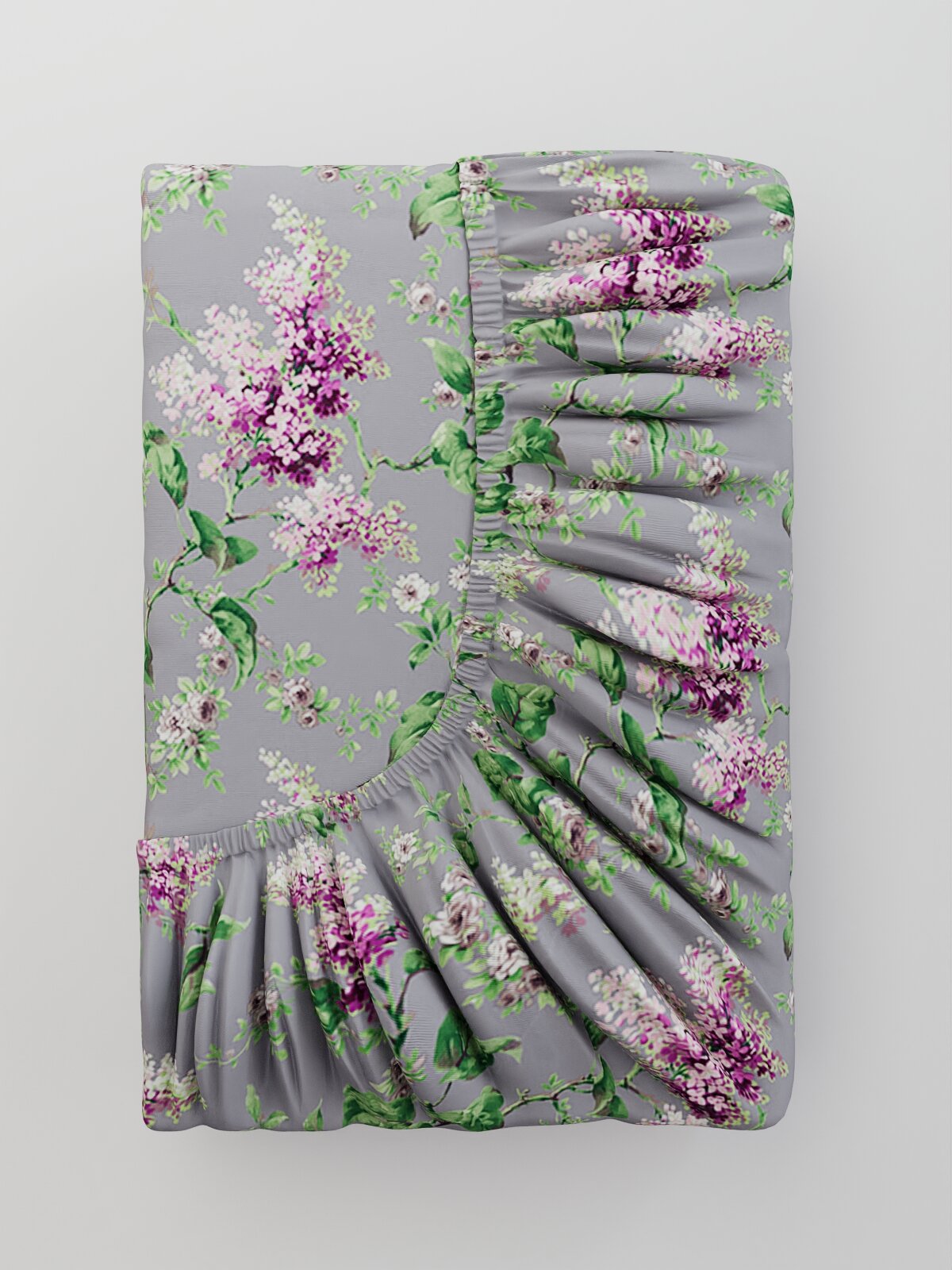 Простынь на резинке Сказка "Сирень" 160х200 см, ткань перкаль, 100% хлопок, высота 26 см